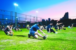 “这边!这边!传给我!”比赛中,飞盘新玩家黄馨仪边跑边注视着在空中滑行的飞盘,即便汗珠挂满额头,她的双眼还是死死盯着飞盘。在耀眼的探照灯下,只见两队人马迅速组织攻防,跑动、跳跃、飞扑,只为把手中的飞盘精准地飞向队友,最终传至得分线。“我是在社交圈接触到飞盘运动的,因为规则简单、上手快,又是团队项目、社交属性强,就喜欢上了这项运动。”飞盘新玩家李苗说。